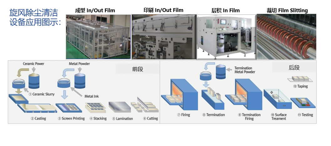 例如,已有對(duì)新能源材料-鋰電薄膜(陽(yáng)極陰極膜整面、Sliting邊緣);光學(xué)薄膜-偏光片、導(dǎo)光板;電容器件-MLCC制造工藝等的非接觸式精密除塵清潔。